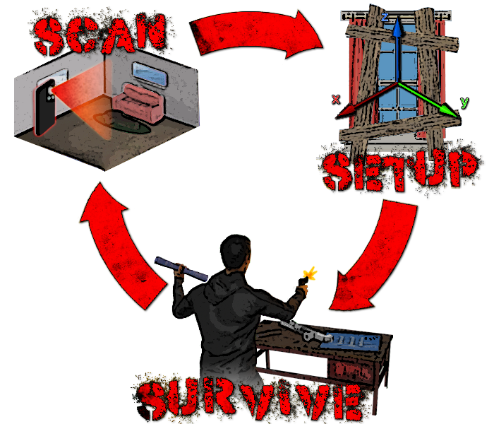 What started as a fun thing for us to blow off steam at work because something we realized other people wanted to do in their 3D scans so we started talking with the major 3D scanning company, Matterport, and collaborated to make MatterPak Attack where you could load your Matterport scans directly into the game and start playing for free. That received a lot of positive feedback from the Matterport community so we decided we wanted to flesh our little zombie shooter into a full fledged game. Doing that costs money, especially for a company that primarily makes software for the government, so we asked the community to help make this project come to fruition through Kickstarter.